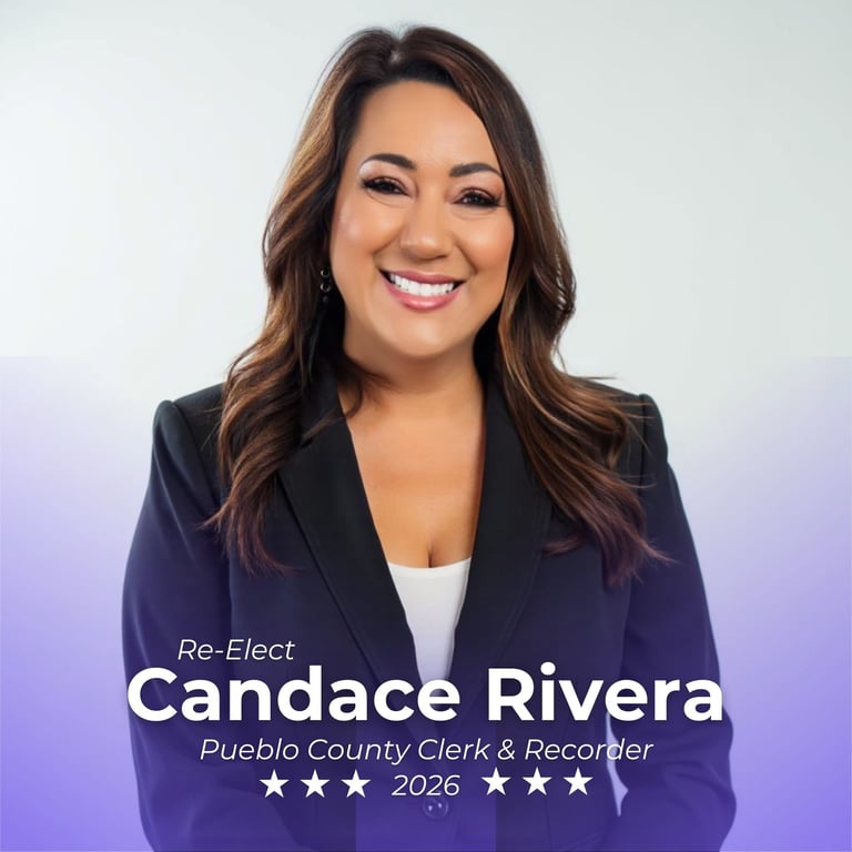 Get in touch with Candace Rivera for Pueblo County Clerk and Recorder.